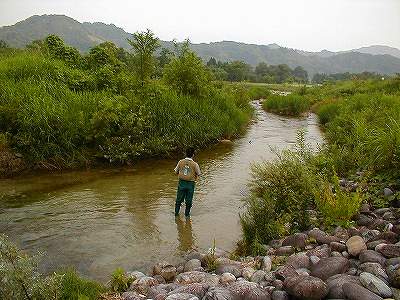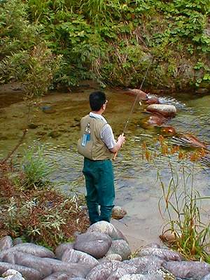 8月7日〜9日まで、山形県の小国町にある「白い森オートキャンプ場」へ行ってきました。 キャンプ場脇の川に架かる橋から川面を眺めていると・・・・・魚影を発見! さっそく釣ってみることにしました。しかし・・・