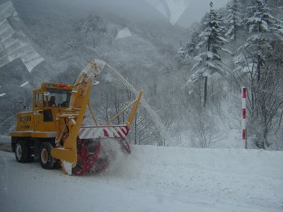 ・寄せ集められた路肩の雪は、ロータリー車で車線外に排出してました。 |