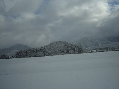 ・途中R13からショートカットして、「まつたけライン」へ・・・ 20p程積もったまんまでした。 直線ですが、雪にハンドルをとられるので飛ばせません。 |