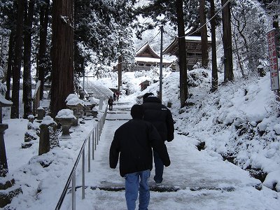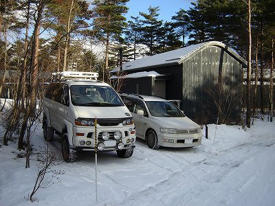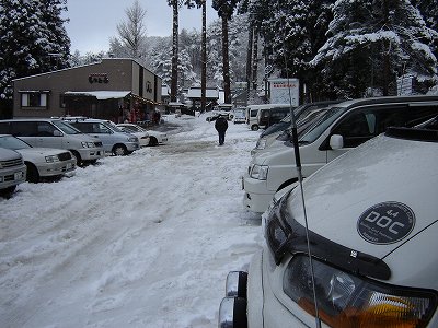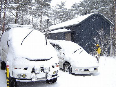 ・翌朝、15p程積もってました・・・ さぶ〜っ! 朝食を食べ昨日に引き続き、本日はおと〜まんの厄払いに出発! |