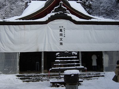 ・無事、「亀岡文殊」へ到着! 名前の通り、学問の神様文殊が祀られており、受験生が大勢祈願に来てました。 |