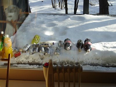 ・今時期、冷蔵庫よりテラスに置いた方がキンキンに冷えます。 忘れると・・・凍ります。 |