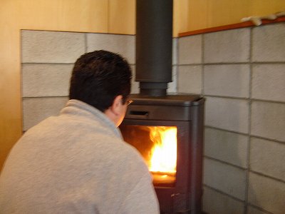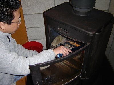 ・オープン以来、何度も来ているおとーまん。 ストーブの扱いもお手の物! |