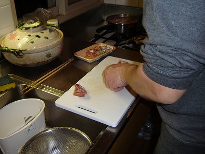 ・子供達をほっといて、大人達は2次会突入! つまみに砂肝を調理するおとーまん。 |