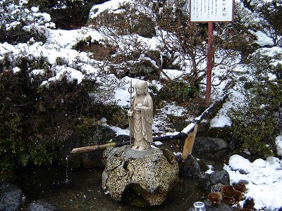 ・十六羅漢です。 雪被って、傘地蔵のようになってました。 |