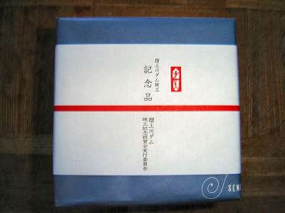 ・これが記念品。 「竣工記念品」と書いてある・・・竣工? 竣工式の残り物か・・・ まあ、タダなのでワクワクしながら開いてみると(^。^) |